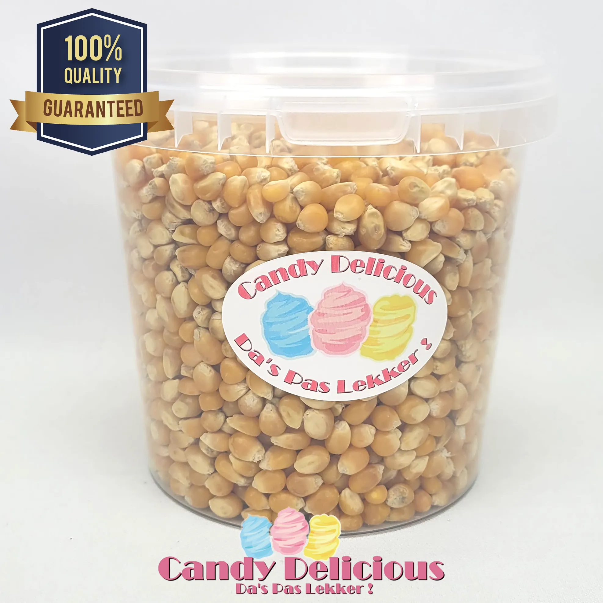 Inhoud van het pakket bestaat uit: 820 gram Maïs in een emmertje van 1 liter.