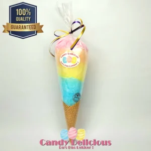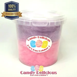 Luchtdicht verpakte Suikerspin in diverse kleuren en smaken.